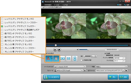 - MP4、AVI、WMV、FLV、MKV、3GP、MOV、RM、RMVBのようなあらゆる動画を3D動画に変換できる