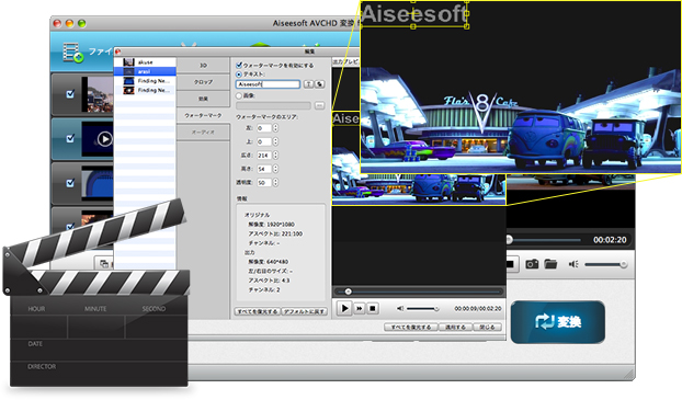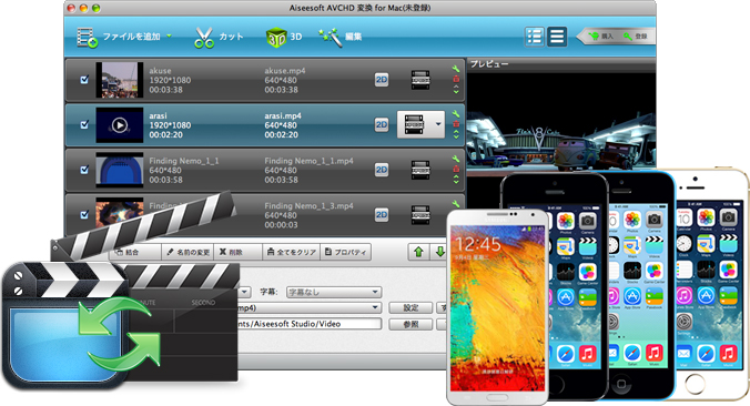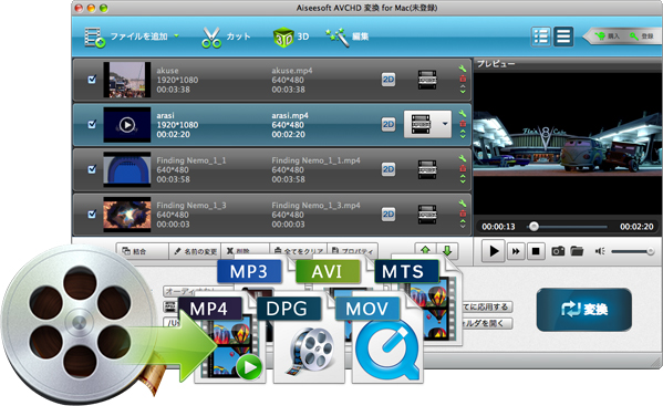 - M2TS、MTS、MODなどのAVCHD動画ファイルをポータブルプレーヤーや QuickTime、Windowsメディアプレーヤーで対応するフォーマットに変換
