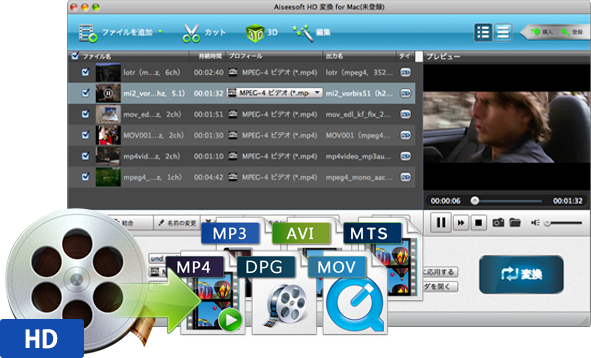 - あらゆるHD動画をサポートして、様々なプレーヤーでHD動画を楽しめる