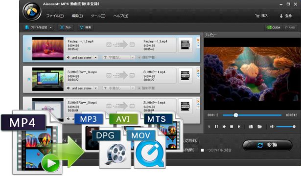 - 同時に多数の動画を変換でき、時間を節約できる