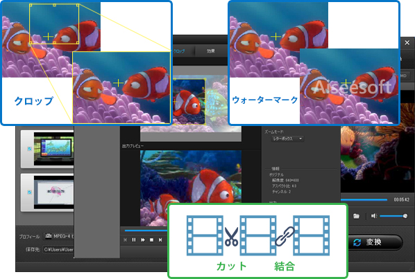 - M2TS、TS、MTS、AVI、WMV、MP4、3GP、3G2、MOV、FLV、MKVなどの流行している動画形式をサポート