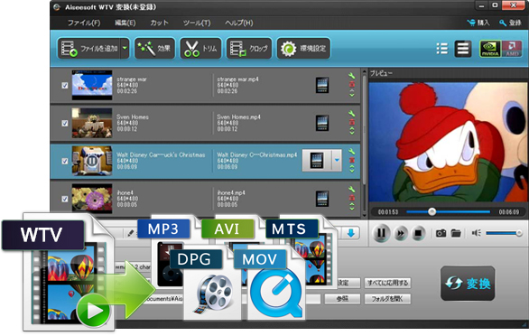 WTV動画を一般的な動画形式、或いは音声形式に変換できる